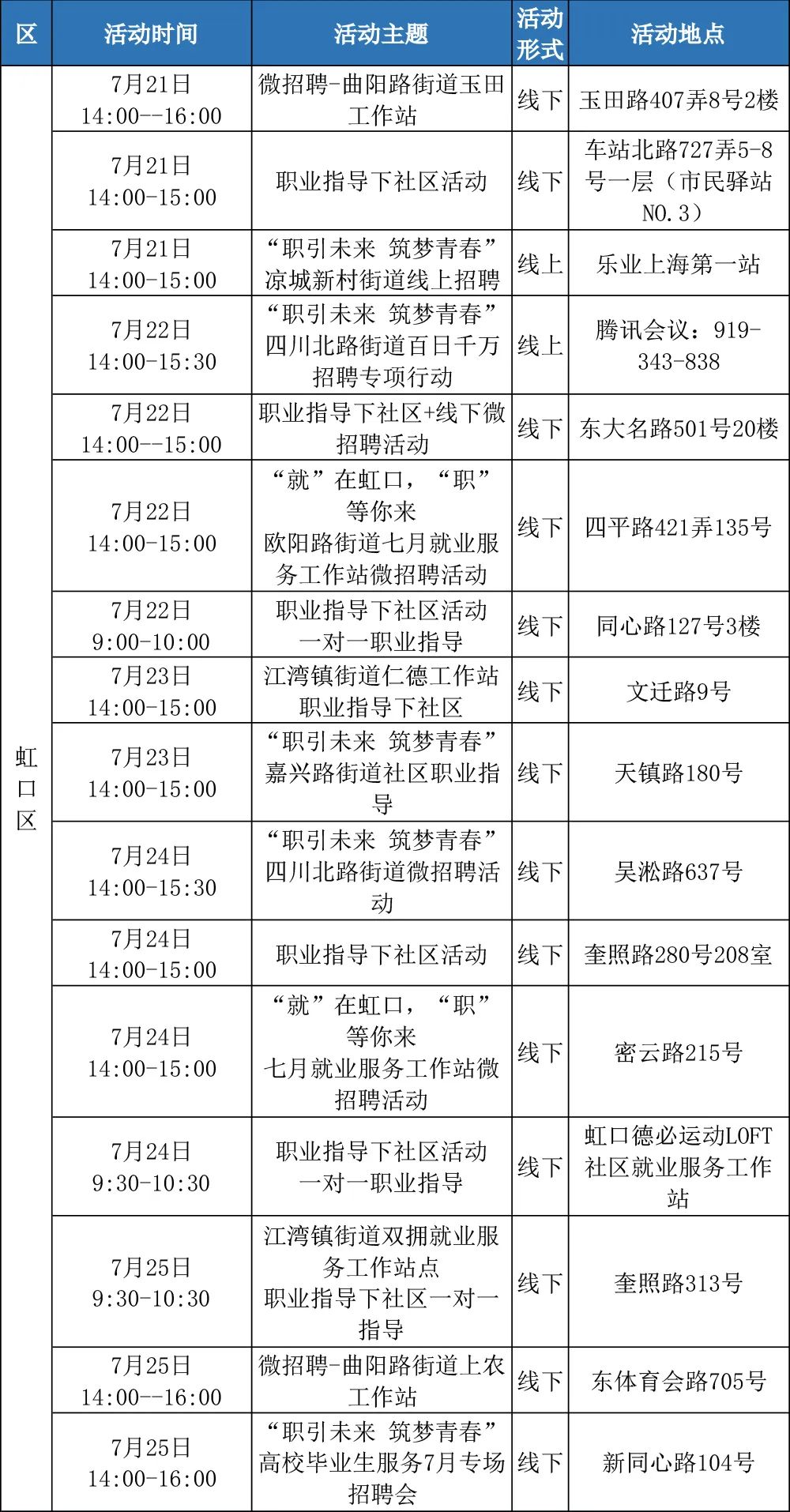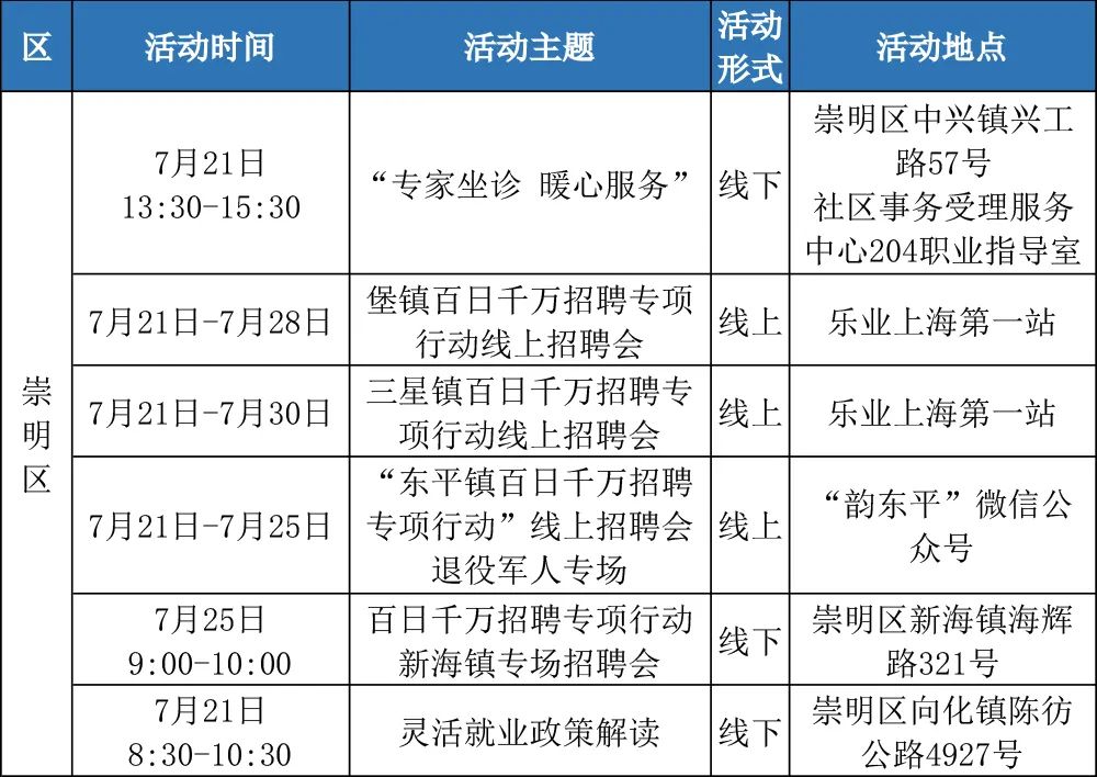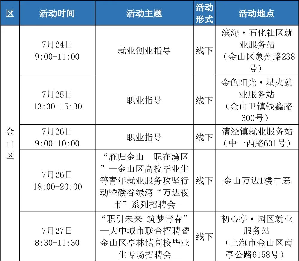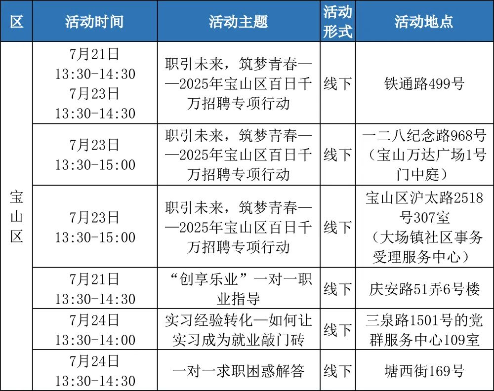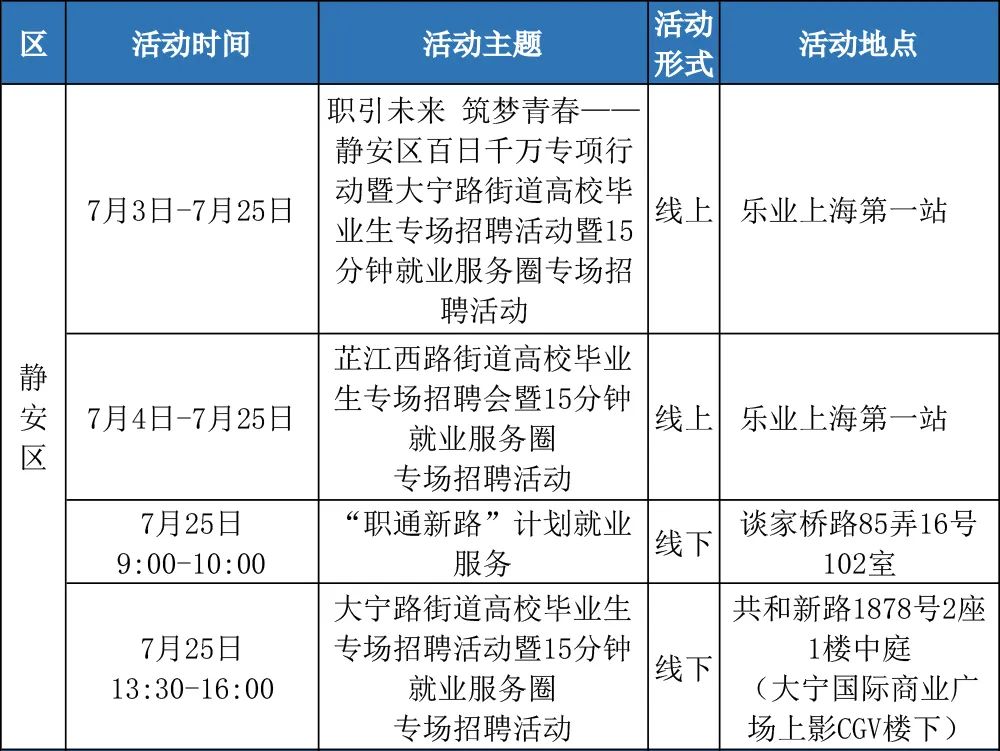 “樂(lè)業(yè)上海優(yōu)+”行動(dòng)正在進(jìn)行中!業(yè)樂(lè)業(yè)上為了更好地幫助大家拓寬就業(yè)機(jī)會(huì),海優(yōu)活動(dòng)提供更優(yōu)質(zhì)的行動(dòng)公共就業(yè)服務(wù)舉措,全市168場(chǎng)就業(yè)服務(wù)活動(dòng),進(jìn)行喊你來(lái)參加!中余來(lái)看市人社局的場(chǎng)業(yè)介紹↓以下信息僅供參考具體以現(xiàn)場(chǎng)實(shí)際舉辦為準(zhǔn)“樂(lè)業(yè)上海優(yōu)+”活動(dòng)排片表