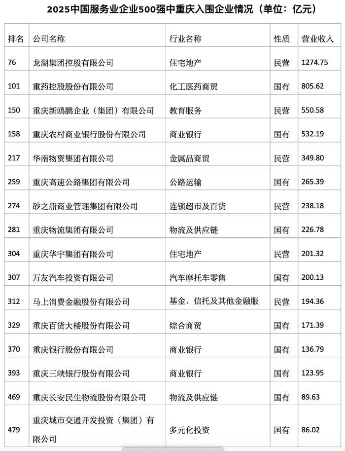 9月18日2025中國服務(wù)業(yè)企業(yè)500強榜單發(fā)布重慶服務(wù)業(yè)多點開花16家重慶企業(yè)上榜