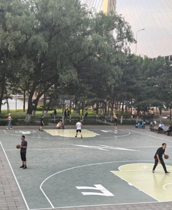 該籃球場(chǎng)的位置在沈陽(yáng)市奧林匹克生態(tài)公園。從圖片來(lái)看,球場(chǎng)上印有?張鎮(zhèn)麟的球衣號(hào)碼“77”以及姓氏字母縮寫(xiě)“Z”。